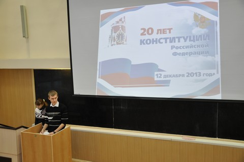 Студенты и преподаватели факультета «Экономика, управление и права» и кафедры «Теория государства и права» приняли участие в конференции «К 20-летию Конституции Российской Федерации». Студенты в своих докладах-презентациях провели исследования значения и степень реализации конституционных прав и свобод Конституции РФ.