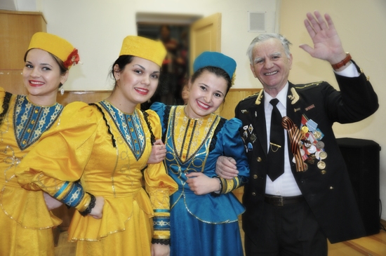 Анна Константинова, Наталья Неведрова и Анастасия Завадская пленили ветерана своим очарованием.