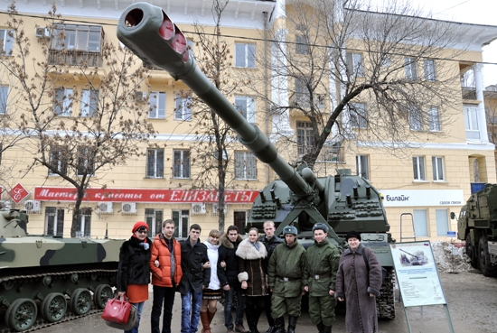 На выставке военной техники.