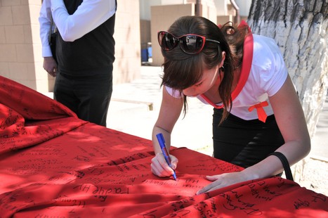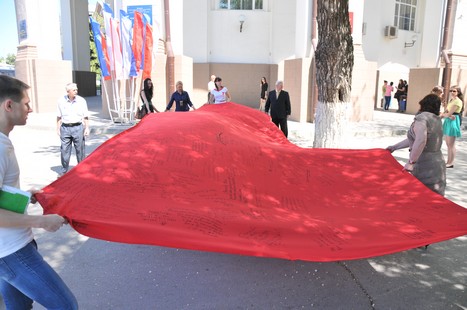 войны. Писали слова благодарности ветеранам на Полотне Победы и вручали им Георгиевские