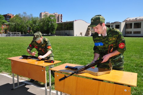 Эстафету памяти подхватили курсанты факультета военного обучения РГУПС. На стадионе