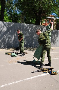обучения продемонстрировали навыки военного дела, соревнуясь в ловкости и находчивости.