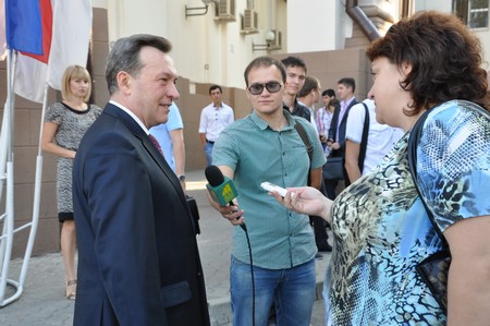 С приветственным словом к первокурсникам выступил ректор РГУПС Верескун В.Д., который отметил, что каждый, кто вливается в дружную семью университета путей сообщения, получает колоссальные возможности для получения качественного образования, которое откроет для будущих специалистов прекрасное будущее.