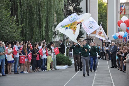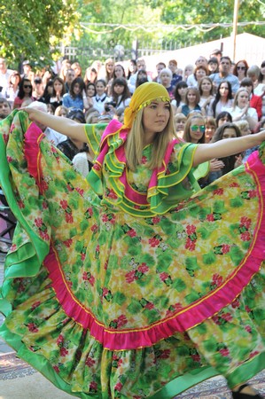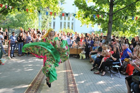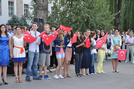 Делегация студентов из Турции - участников программы обмена «Молодежная школа «Диалог культур» подарили творческий номер, а народный эстрадный ансамбль «Успех» посвятил свое выступление празднованию 150-летия СКЖД.