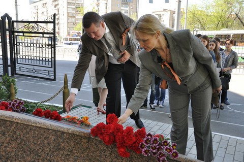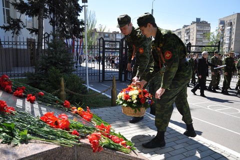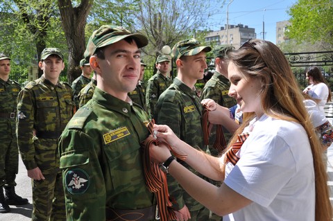 В студенческом парке шумно и празднично. Студенты встречали ветеранов Великой Отечественной войны благодаря их за ратный подвиг, повязывая георгиевские ленточки. На Полотне Победы традиционно, многие годы ветераны, студенты и преподаватели делают записи о своих дедах и прадедах, боевых товарищах - участниках, тех страшных событий Великой Отечественной. Со строевой песней и равнением на ветеранов маршировал взвод студентов факультета военного обучения. В солнечном весеннем парке традиционная фотография ветеранов со студентами и лицеистами. Торжественная делегация участников мероприятия возлагает цветы к Памятному Знаку героям народного ополчения, который риижтовцы ласково называют «Звездочкой». И, конечно, душевная встреча ветеранов за чайным столом. В атмосфере дружеской беседы, не скрывая слез нахлынувших воспоминаний, ветераны рассказывали о днях своей юности – тяжелой работе в тылу, сражениях на фронтах Великой Отечественной войны; о первой любви, становлении семейной жизни, рождении детей в те тяжелые для страны и каждого человека времена... Со словами искренней благодарности, преклонением к подвигу, совершенному старшим поколением риижтовцев в военные годы выступили: ректор РГУПС В.Д. Верескун, президент РГУПС В.И. Колесников, проректор по науке А.Н. Гуда, проректор по воспитательной работе и социальному развитию Е.Г. Шепилова. Народный ансамбль «Любава» подарил ветеранам концерт военных песен, которые не оставили равнодушными сердца и души наших дорогих ветеранов.