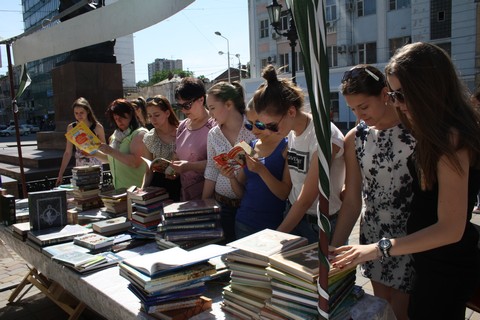 На улице Пушкинской у памятника поэту студенты и преподаватели возложили цветы, читали любимые стихи, познакомились с экспонатами книжной выставки-ярмарки произведений Александра Сергеевича. Поэзия Великого поэта ассоциируется в наших сердцах с вечными и прекрасными ценностями – Родина, Россия, Любовь…