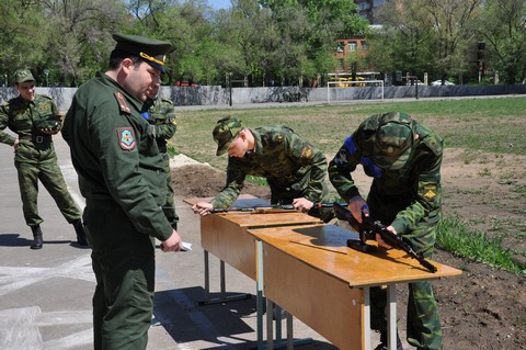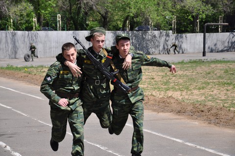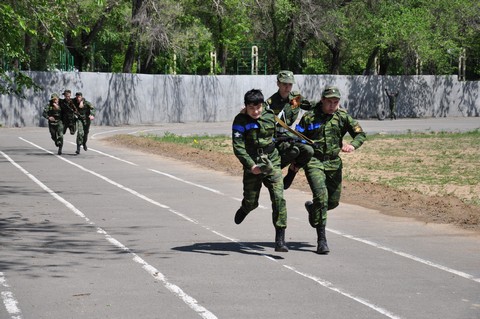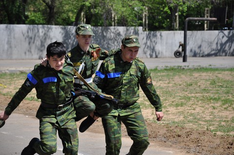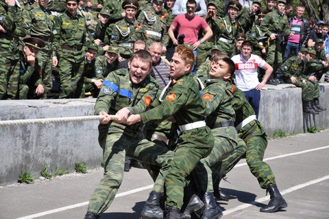 Затем, по команде начальника факультета военного обучения А.А. Хрусталева, начались соревнования по военно- прикладным видам спорта. Поддерживаемые горячими криками болельщиков, студенты соревновались в поднятии гири, быстроте разборки и сборки автомата Калашникова, беге в общевойсковом защитном комплекте (ОЗК), переноске ящика с боеприпасами, транспортировке раненого и т.д. В заключение соревнований парни выясняли, кто сильнее в перетягивании каната. По итогам соревнований победила команда кафедры ЖДВ и ОВП.