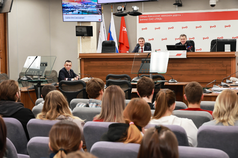 16 декабря состоялась встреча студентов выпускных курсов железнодорожных специальностей с начальником Северо-Кавказской железной дороги – филиала ОАО «РЖД» С.А. Задориным. Важной частью мероприятия была лекция Сергея Александровича на тему «Состояние и перспективы развития Северо-Кавказской железной дороги». В рамках рубрик «Истории успеха» и «Возможности компании ОАО «РЖД»» состоялся живой диалог с перспективными руководителями, а экскурсионная программа по Диспетчерскому центру управления перевозками и другим объектам транспортной инфраструктуры оставила у студентов яркие впечатления и помогла по-новому взглянуть на свою будущую профессию.