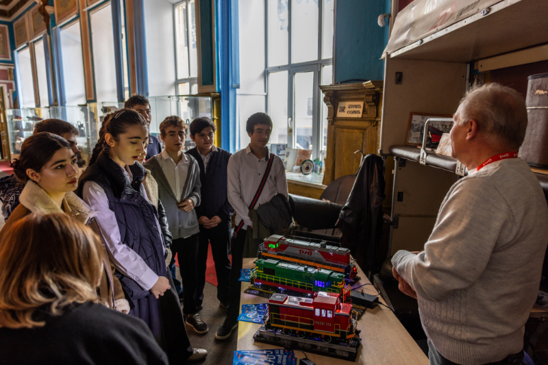 Также для школьников была организована выставка, посвященная железнодорожному моделированию от Владикавказской детской железной дороги, ребята увидели макеты, созданные руками юных железнодорожников, что стало ярким примером преемственности поколений и ранней профориентации.