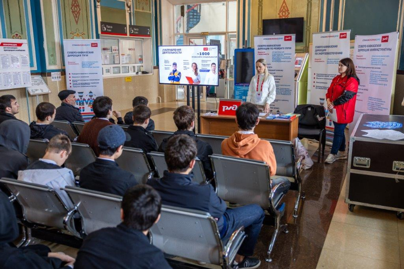 На вокзалах городов начальник отдела профориентации и практической подготовки Центра развития карьеры Фисенко К.С. выступал перед школьниками с рассказом о специальностях и направлениях подготовки, которые предлагает университет, а также о широких возможностях для насыщенной и интересной студенческой жизни, доступных для будущих абитуриентов. Представители службы управления персоналом СКЖД знакомили будущих абитуриентов со структурой компании, перспективах карьерного роста, льготах и гарантиях, предоставляемых студентам-целевикам и молодым специалистам.