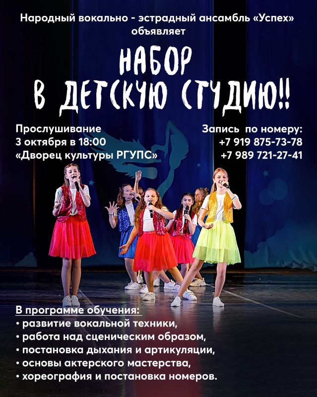 Народный вокально-эстрадный ансамбль «Успех» объявляет набор в детскую студию