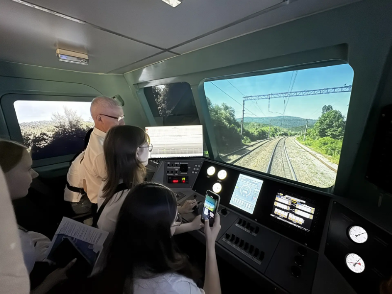 После знакомства с теорией и историей дела школьников ждало самое интересное — знакомство с профессией «Машинист локомотива». На современных тренажёрных комплексах, в точности имитирующих кабины электровозов и тепловозов, ребята смогли самостоятельно провести локомотив по заданному участку пути, почувствовать всю ответственность и сложность управления огромной машиной, отработать действия в нештатных и аварийных ситуациях в обстановке, максимально приближенной к реальности. А помогали им в этом машинисты-инструкторы СК УЦПК и амбассадоры Профессионалиета – студенты 3 курса техникума РГУПС, обучающиеся на специальности «Техническая эксплуатация подвижного состава железных дорог», участники регионального этапа Чемпионата по профессиональному мастерству «Профессионалы» в компетенции «Управление локомотивом».