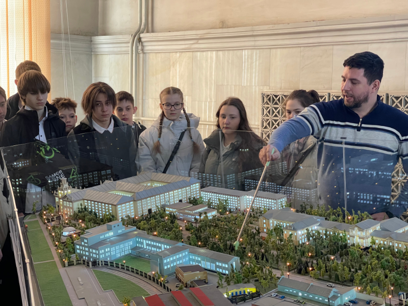 Помимо общей информации об университете и знакомства с кампусом, обучающиеся увидели историю развития железнодорожного транспорта, расположенную в выставочном комплексе РГУПС: от первых вагонеток и паровозов до современных высокоскоростных составов.
