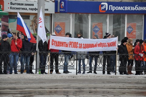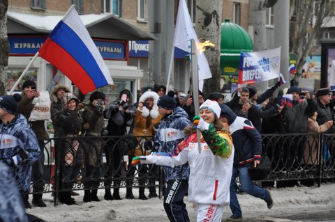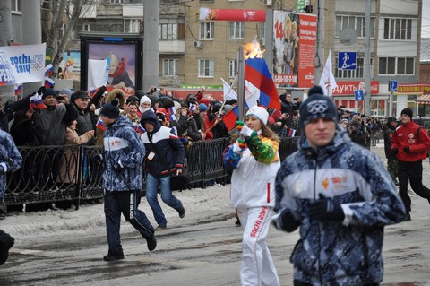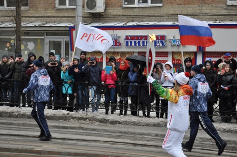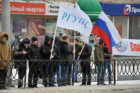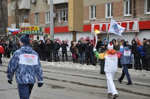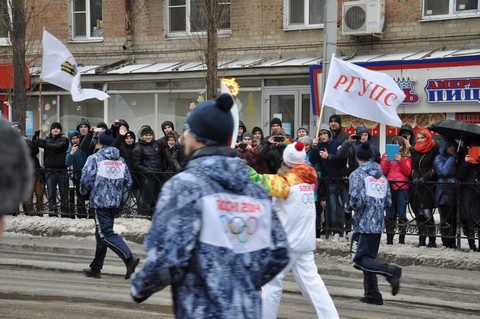 университета путей сообщения приветствуют факелоносцев олимпийского огня XXII