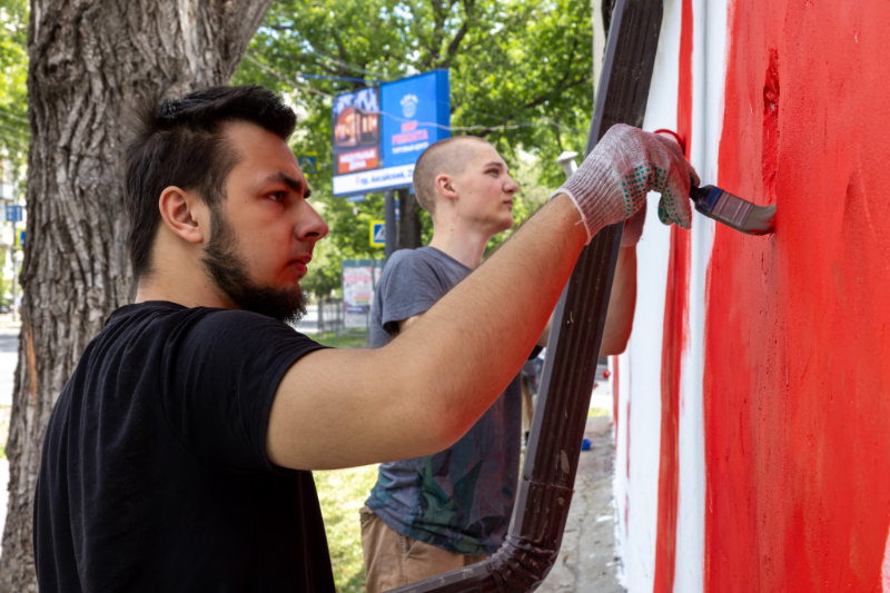 Совместно с Администрацией города студенты электромеханического, строительного и факультета ДСМ, в том числе и бойцы студенческих отрядов воплотили идею масштабной художественной росписи стен на ул. Ларина, посвященной славному подвигу советского народа в годы Великой Отечественной войны. Студенты активно включились в процесс оформления композиции, создания уникального произведение искусства, отражающее героизм и самоотверженность предков.