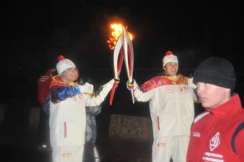 Бойцы студенческого строительного отряда РГУПС, непосредственные участники строительства Олимпийских объектов, приветствовали своего командира, студента энергетического факультета Андрея Живого - участника эстафеты Олимпийского огня.