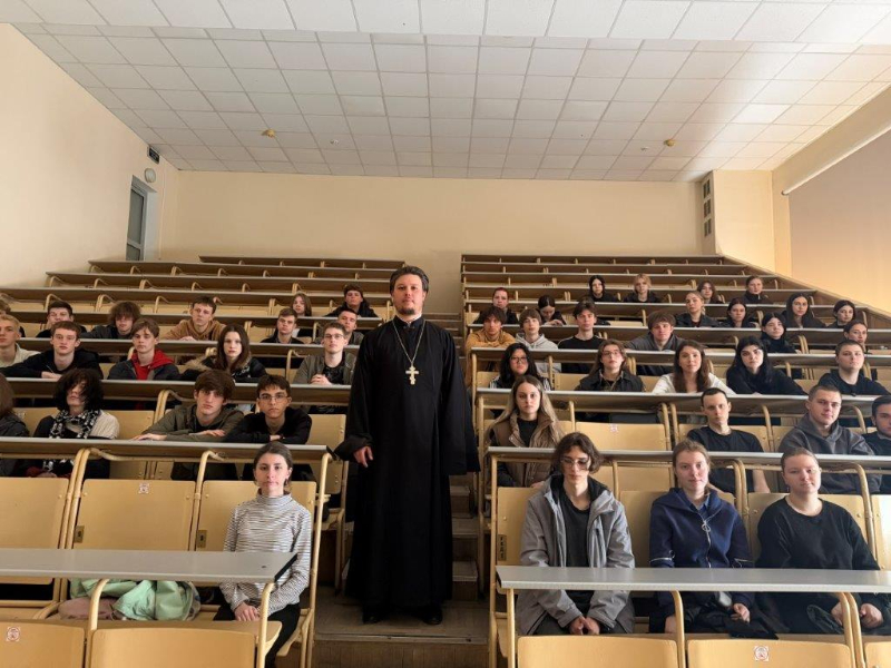 В начале апреля первокурсники и студенты, обучающиеся по программе СПО, пообщались с настоятелем храма Св. пр. Иоанна Кронштадтского иереем Пантелеймоном Шереметьевым.