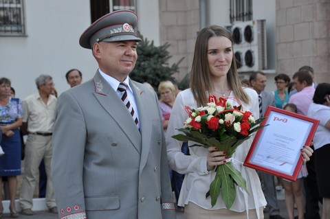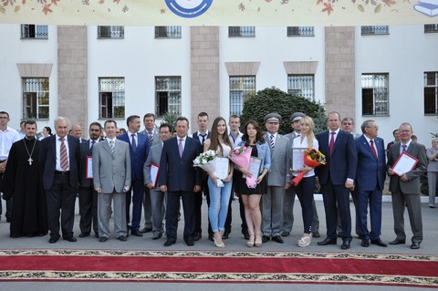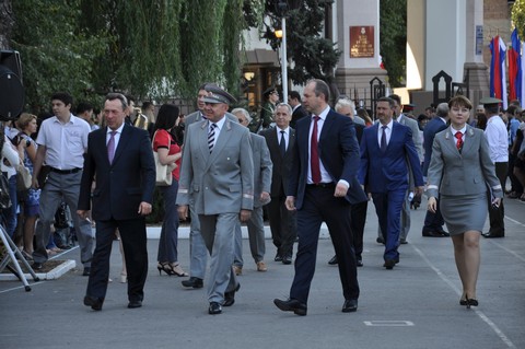 Виновников торжества, поздравлениями и напутствиями приветствовали ректор РГУПС В.Д. Верескун и почетные гости: начальник Северо-Кавказской железной дороги – филиала ОАО «РЖД» В.Н. Голоскоков, министр транспорта Ростовской области В.В. Кушнарев, заместитель руководителя Южного территориального управления Федерального агентства железнодорожного транспорта В.И. Пивоваров, президент РГУПС В.И. Колесников, иерей, настоятель храма Святого Праведного Иоанна Кронштадтского Владислав Паланчев.