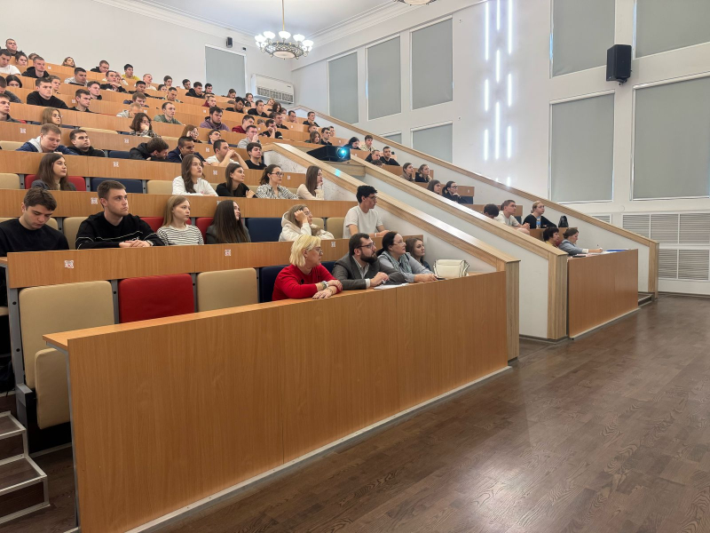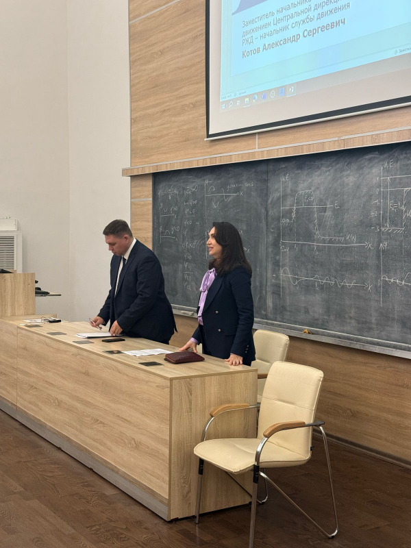 29 апреля состоялась встреча студентов факультета УПП с заместителем начальника Северо-Кавказской дирекции управления движением Котовым Александром Сергеевичем и заместителем начальника дирекции управления движением по кадрам и социальным вопросам Бабаевой Людмилой Рамазановной.