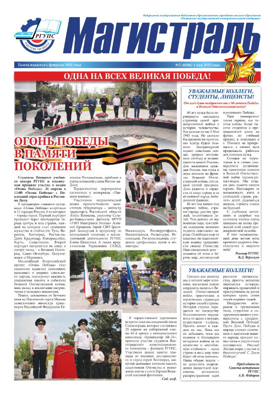 Выпуск газеты "Магистраль" 1 мая 2025 г.
