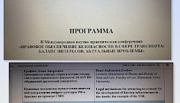 В рамках конференции были заслушаны доклады разностороннего характера, связанного с обеспечением безопасности всех видов транспорта (морского, железнодорожного, воздушного), мультимодальными перевозками с точки зрения гражданского права; правовое обеспечение безопасности при использовании средств индивидуальной мобильности; правовыми проблемами обеспечения безопасности транспортно-технологических комплексов в международных транспортных коридорах. Были заслушаны доклады не только научных сотрудников и ученых Юридического института, Российского университета транспорта и других российских вузов, но и представителей иностранных университетов: Декан юридического факультета Национального университета Аджлун, Иордания представил доклад на тему: «Правовой режим залива Акаба в свете безопасности»; Доктор Хлали Арбия, Профессор Университета Таиба, Саудовская Аравия, представил доклад на тему «Обеспечение безопасности судоходства автономных судов».