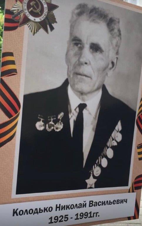 Колодько Николай Васильевич (1925-1991г.). Он ушёл на войну в 1942 году, был рядовым. Но позже попал в госпиталь, так как был ранен в боях в Белоруссии.