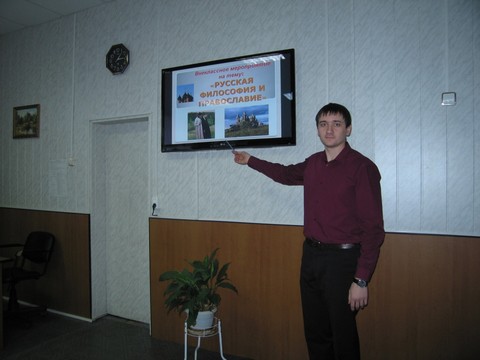 13 ноября 2014 года в читальном зале библиотеки ЛТЖТ – филиала РГУПС прошло внеклассное занятие для студентов 4 курса специальности ЭПС на тему: «Русская философия и православие». Данное мероприятие было непосредственно связано с общим курсом Основы философии, который читается на этой специальности. В ходе мероприятия студенты не только ближе познакомились с вопросом значения Церкви и христианства в деле становления русской философии, но и сами приняли участие в подготовке и проведении мероприятия.
