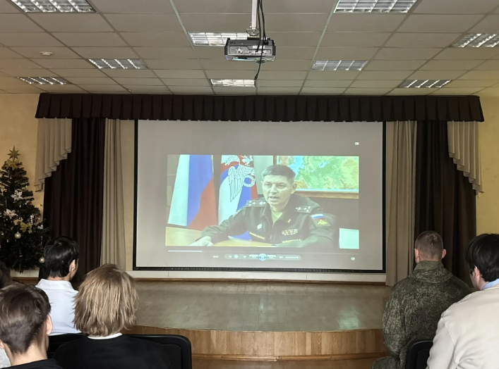 Военнослужащие показали демонстрационный фильм о Санкт-Петербургском институте железнодорожных войск и военных сообщений имени генерала армии А.В. Хрулева.