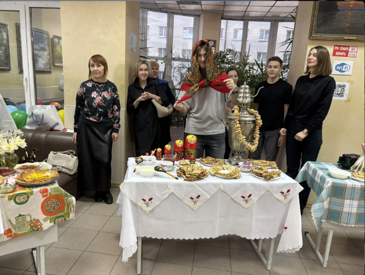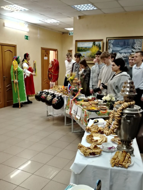 18 февраля учащиеся лицея приняли участие в «Широкой Масленице». Каждый класс сервировал свой отдельный стол. Лицеисты уделили особое внимание украшениям ˗ здесь были  и паровозики из блинов и пряников, и большой русский самовар, и хохлома, и баранки с бубликами.