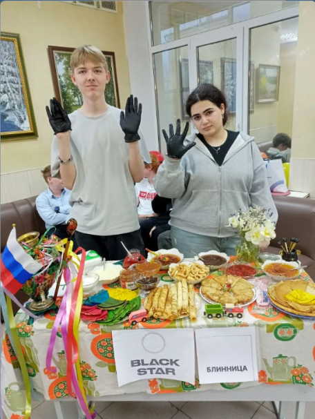Столы ломились от угощений и вкусностей. А какие блины приготовили ребята ˗ и с творогом, и с яблоками, и с мясом – на любой вкус! Каждый имел возможность попробовать варенья и угощения.