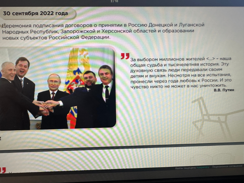 В ходе проведения внеурочного занятия «Разговоры о важном» студентам техникума разъяснены основные положения исторического решения – заключения договоров о включении в состав РФ Донецкой Народной Республики (ДНР), Луганской Народной Республики (ЛНР), Херсонской и Запорожской областей.