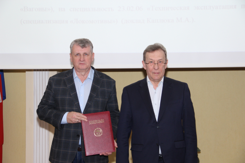 Благодарственное письмо комитета Государственной думы по транспорту и развитию транспортной инфраструктуры за значительный вклад в подготовку инженеров энергетиков для транспортной отрасли вручено декану Энергетического факультета Финоченко Виктору Анатольевичу.