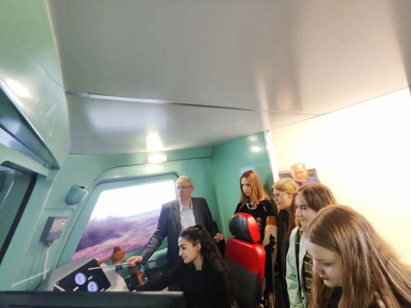 После знакомства с теорией и историей дела школьников ждало самое интересное — знакомство с профессией «Машинист локомотива». На современных тренажёрных комплексах, в точности имитирующих кабины электровозов и тепловозов, ребята смогли самостоятельно провести локомотив по заданному участку пути, почувствовать всю ответственность и сложность управления огромной машиной, отработать действия в нештатных и аварийных ситуациях в обстановке, максимально приближенной к реальности. А помогали им в этом машинисты-инструкторы СК УЦПК и амбассадоры Профессионалиета – студенты 3 курса техникума РГУПС, обучающиеся на специальности «Техническая эксплуатация подвижного состава железных дорог», участники регионального этапа Чемпионата по профессиональному мастерству «Профессионалы» в компетенции «Управление локомотивом».