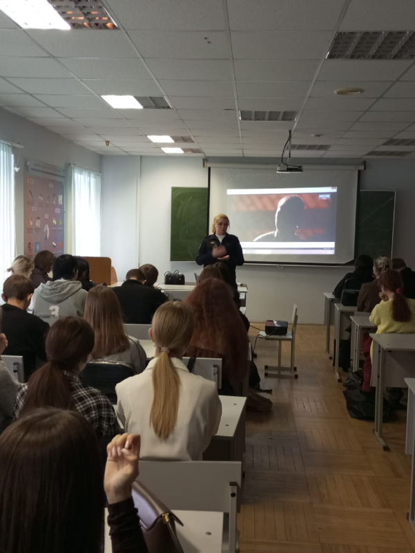 В рамках взаимодействия факультета «Экономика, управление и право» правоохранительными органами 1 декабря 2025 года были организованы лекции-беседы старшего инспектора по делам несовершеннолетних ОПДН Ростовского ЛУ МВД России на транспорте, майора полиции Натальи Степной со студентами 1 курса, обучающимися на отделении СПО на факультете «Экономика, управление и право».