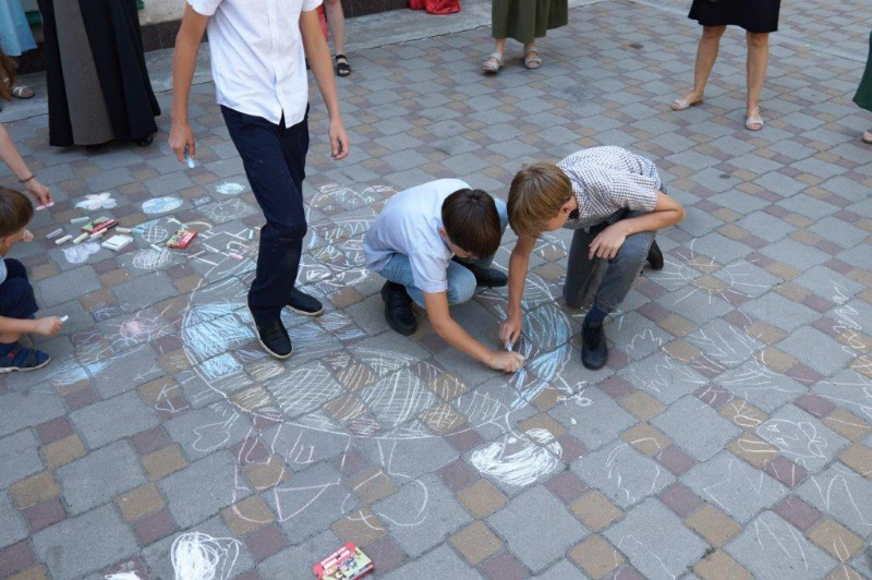 Для детей был организован конкурс рисунков на асфальте «Я рисую мир», во время которого они смогли проявить свои таланты, а также получить совет и поддержку от студентов. Каждый из участников получил небольшой приз, а победителям были вручены памятные подарки.