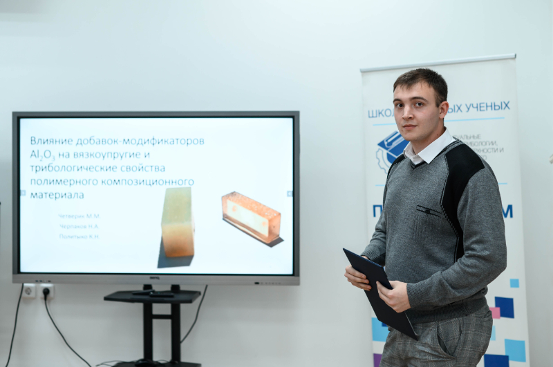 Четверик Максим Максимович, Политыко Кирилл Николаевич – аспиранты, Черпаков Никита Александрович – студент – «Влияние добавок- модификаторов Al2O3 на вязкоупругие и трибологические свойства полимерного композиционного материала»