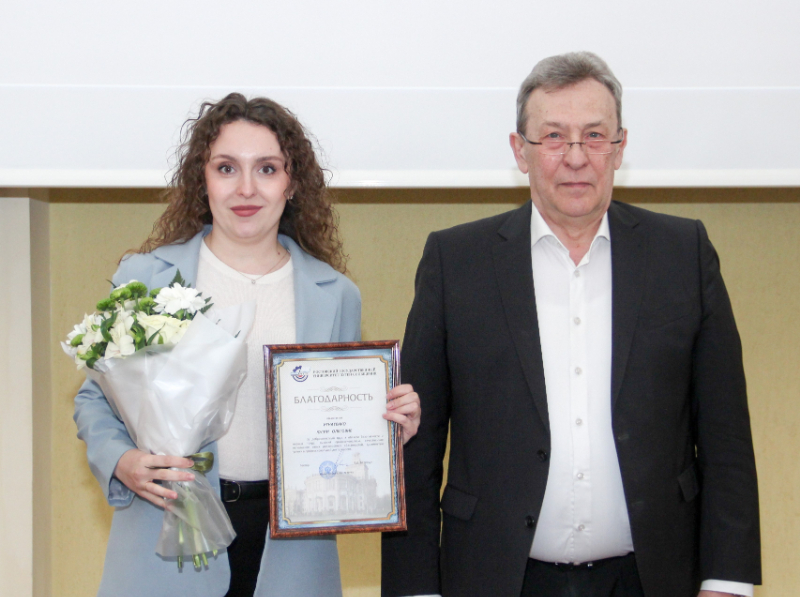 За высокие профессиональные качества и значительные успехи в организации и совершенствовании учебного и воспитательного процессов, а также личный вклад в подготовку высококвалифицированных специалистов для железнодорожного транспорта награждена Почетной грамотой РГУПС Губанова Татьяна Владимировна заместитель начальника ПЭУ.