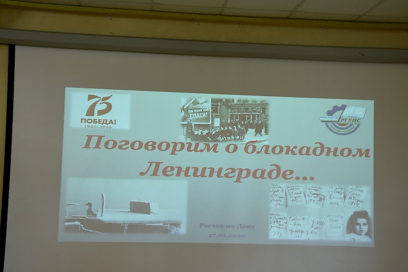 Заместитель директора лицея РГУПС А.А. Юносова рассказала о родителях директора лицея Панфиловой Н.М., которые были непосредственными участниками тех страшных событий. Отец - Панфилов М.М. был назначен начальником оборонительных сооружений на станции Вейрман для выполнения особо важных секретных заданий по проектированию переправы через Ладожское озеро. Мать - Панфилова А.С. – помогала эвакуировать детей Ленинграда в г. Челябинск, взяв на себя всю организацию эшелона т.к. при бомбежке погиб начальник поезда. После войны М.М. Панфилов приехал в Ростов-на-Дону восстанавливать РИИЖТ и возглавлял его в течение 18 лет.