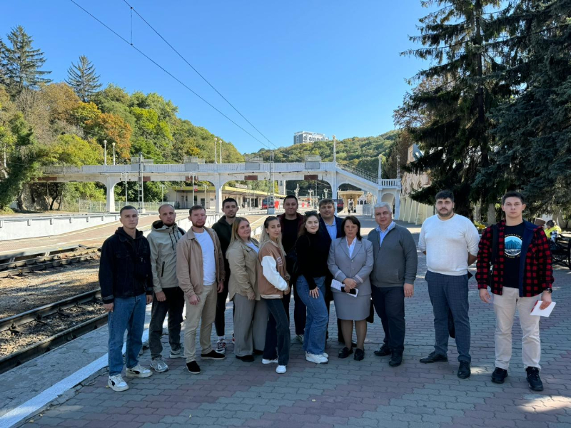 Затем группа совершила трансфер в г. Кисловодск во время которого представители АО «Северо-Кавказская пригородная пассажирская компания» провели мастер-класс по технологиям обслуживания пассажиров. Первым объектом в г. Кисловодск, который посетила группа стал остановочный пункт «Минутка» – объектом культурного наследия, на котором представитель дирекции пассажирских обустройств познакомил с историей и планах строительства нового комплекса. На Кисловодском вагонном участке студентам был проведен мастер-класс по технологическому процессу мойки пассажирских вагонов.
