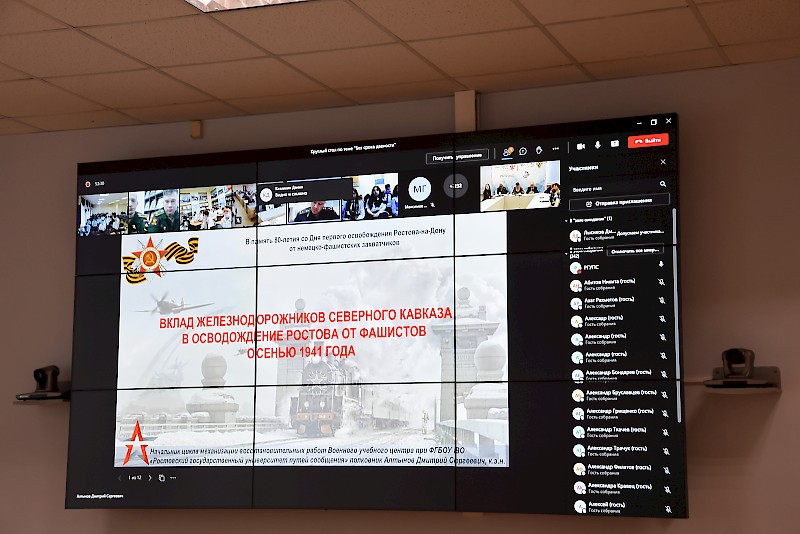 С докладами о военной операции по освобождению нашего города, стратегическом значении боевых действий на Северном Кавказе, перестройке работы железнодорожного транспорта на военный лад, о вкладе железнодорожников в победу выступили Сапоговский Роман Андреевич – старший преподаватель ВУЦ РГУПС, Алтынов Дмитрий Сергеевич – начальник цикла ВУЦ РГУПС.