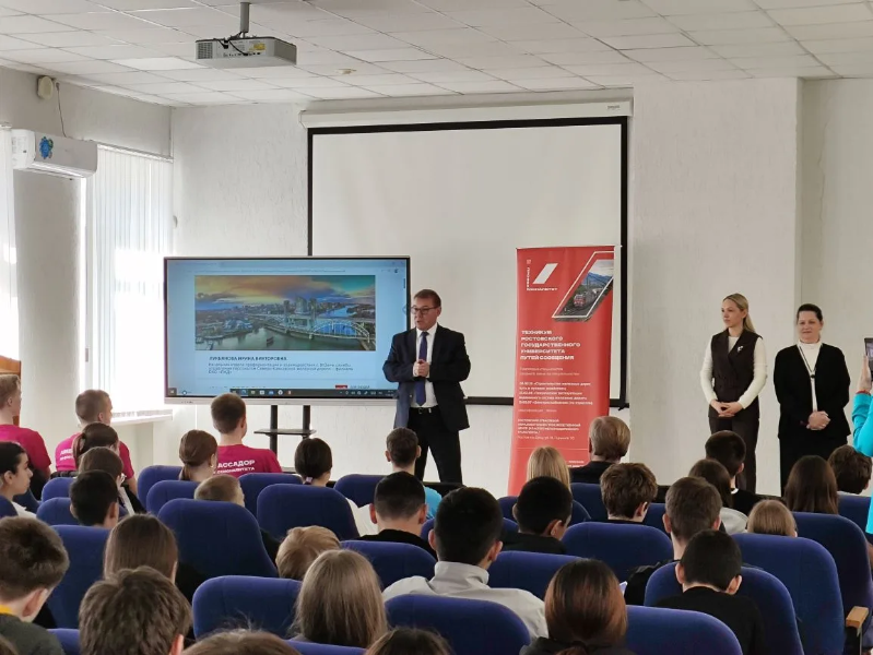 Но самым волнительным моментом стала информация о карьерном лифте. Школьникам рассказали о главной привилегии обучения в рамках проекта: возможности гарантированного трудоустройства на предприятия холдинга сразу после выпуска из техникума РГУПС. Это не просто работа «с улицы», а старт с более высокой должности и достойной заработной платы. Для многих это стало настоящим открытием: оказывается, получить стабильную карьеру в крупнейшей транспортной компании страны можно гораздо быстрее, чем кажется.