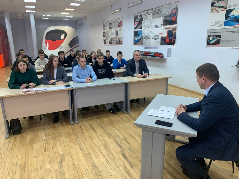 Встреча студентов с заместителем начальника по кадрам и социальным вопросам Северо-Кавказского филиала АО «ФПК» А.В. Силановым