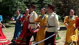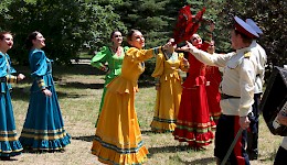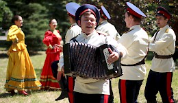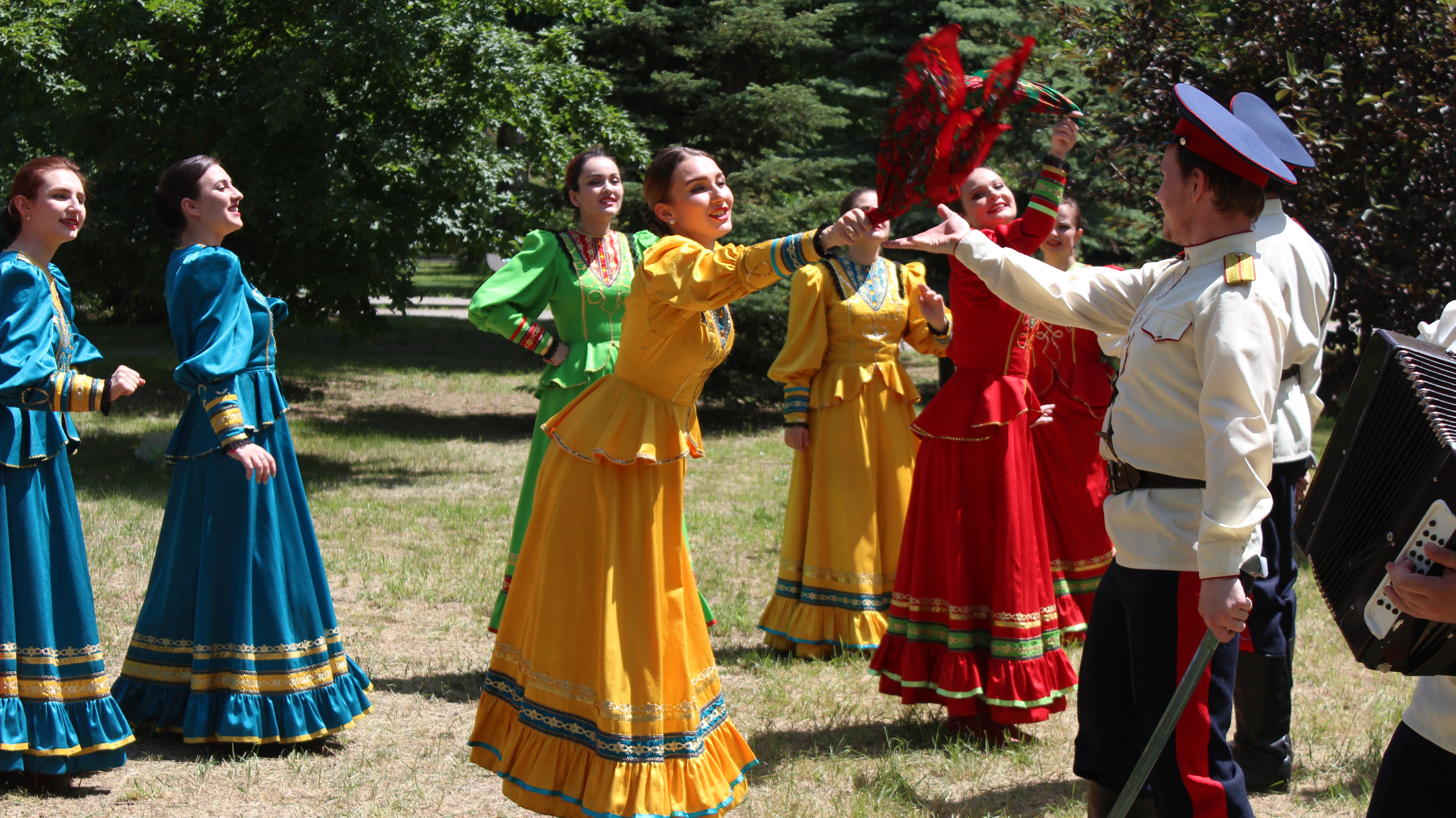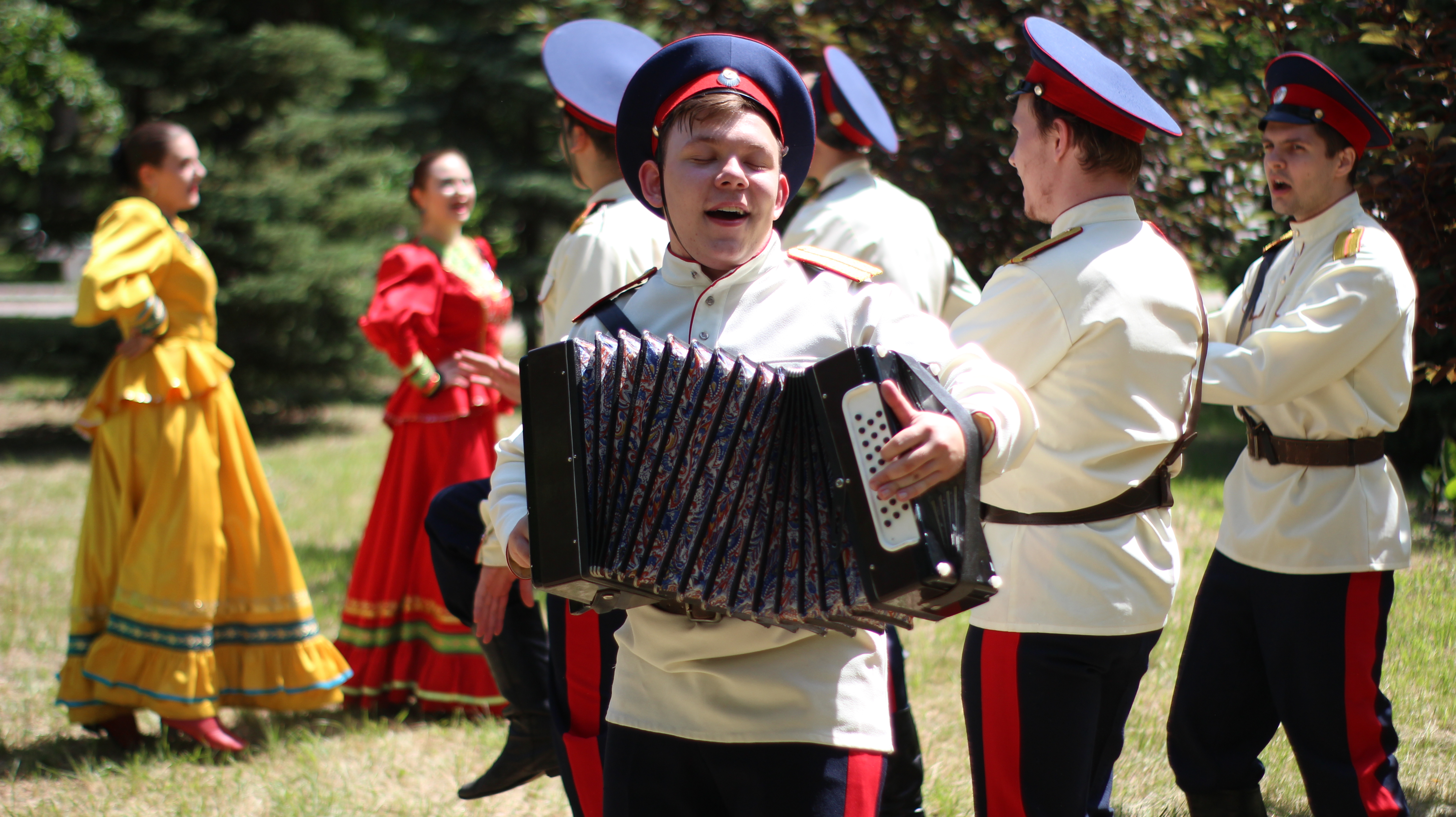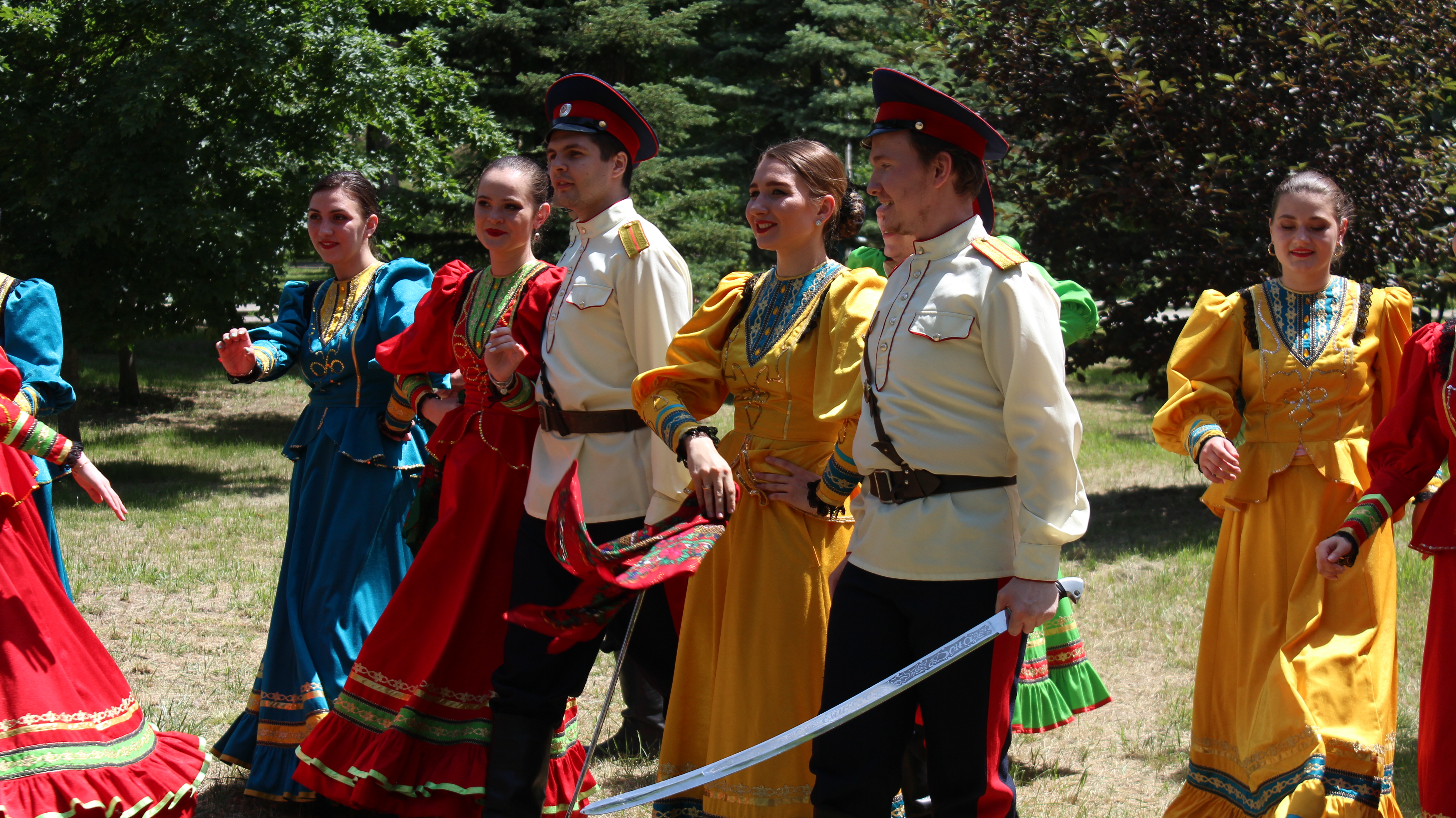 Фольклорный ансамбль «Любава» (рук. Галина Кирсанова) представил песню «Казачий край», передав через атмосферу творчества яркий колорит Донской земли.